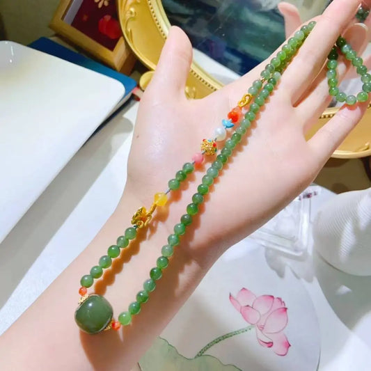 Hetian Jade Bead Clavicle Necklace with Luxury Elements