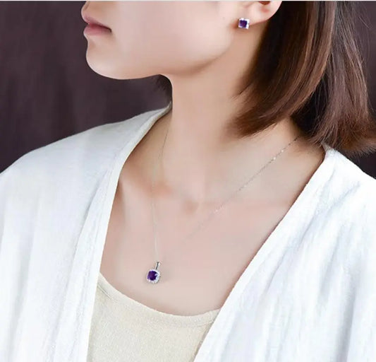 Amethyst Square Pendant Necklace in 925 Silver Chic Clavicle ChainRegular price $140.00 USDRegular priceUnit price / per$199.00 USDSale price $140.00 USDSale