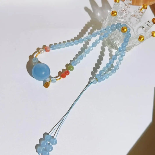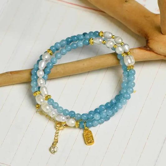 Aquamarine Pearl Necklace Clavicle Chain for Elegant Style
