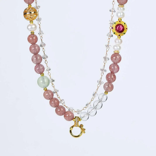 Strawberry-Inspired Dual-Purpose Crystal Bracelet Necklace