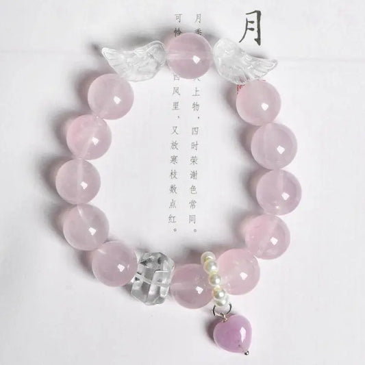 Natural Jelly Like Pink and Clear Quartz Angel Wing Bracelet