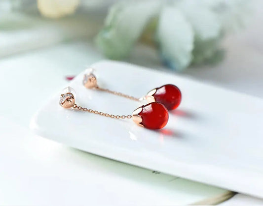 Crimson Elegance 18K Gold Natural Crystal Garnet Earrings