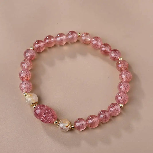 Strawberry Crystal Pixiu Bracelet for Style and Protection