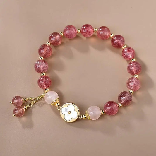 Strawberry Crystal Four-Leaf Clover Bracelet for Elegance